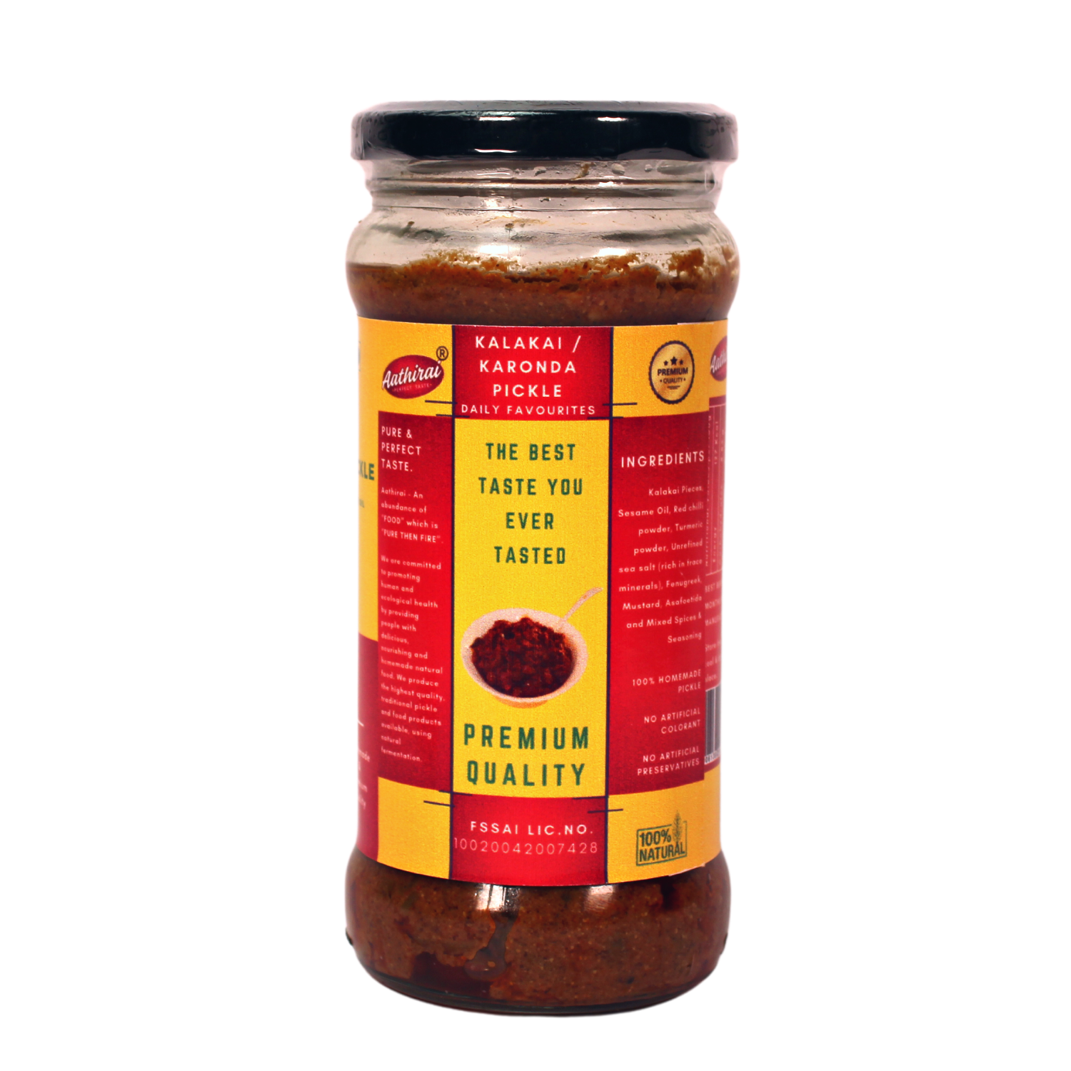 Ingredients: Kalakai, Sesame Oil, Red chilli powder, Turmeric powder, Unrefined sea salt (rich in trace minerals), Fenugreek, Mustard, Asafoetida and Mixed Spices & Seasoning