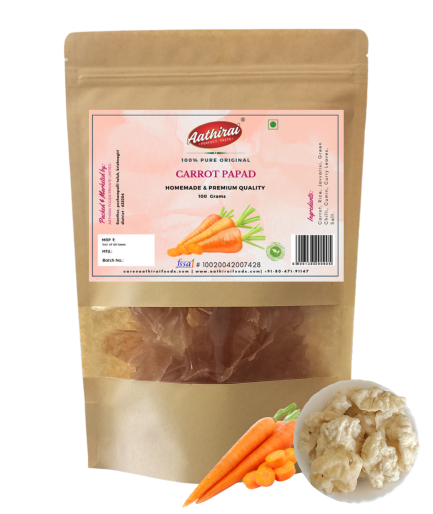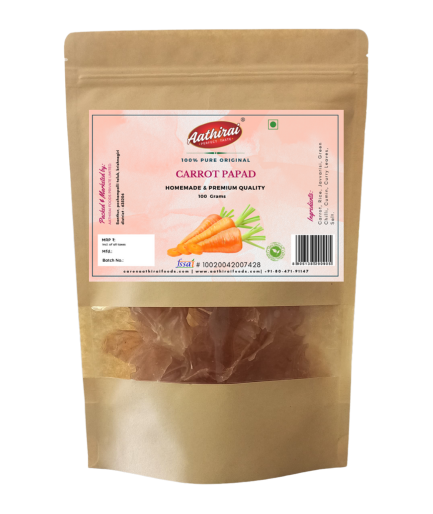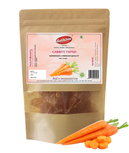 Try Aathirai Carrot Papad is one of the best and healthy side dishes for lunch/ dinner made using organic ingredients with no artificial colors, no preservatives and gluten free.